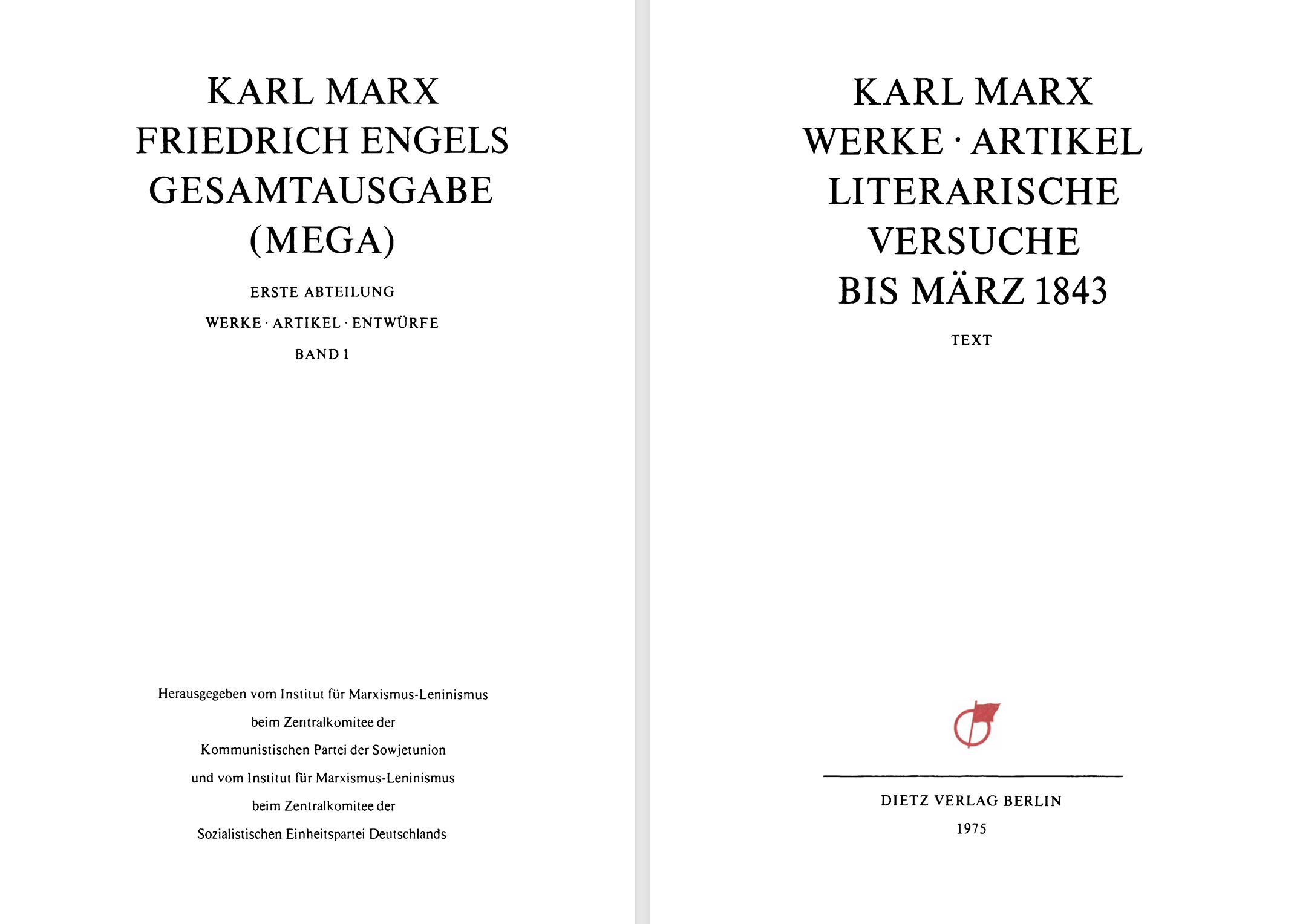 2. La primera MEGA. – Solo en la Unión Soviética se dieron las condiciones para una edición completa de las obras. Por un lado, esto reforzó los lazos político-partidistas, ya que el proyecto se convirtió, tras la división del movimiento obrero, en una iniciativa de la Comintern, que decidió llevarlo a cabo en forma de MEGA en su V Congreso Mundial de 1924. La afiliación institucional del proyecto al Instituto Marx-Engels y, tras su disolución en 1931, al Instituto Marx-Engels-Lenin de Moscú, junto con la ampliación del estatus de las figuras clásicas para incluir a Lenin y, más tarde, temporalmente, a Stalin, vinculó irrevocablemente el proyecto al Estado soviético y a su partido. Por otra parte, el MEGA no carecía de conexiones internacionales, en particular con la socialdemocracia alemana, cuyo archivo de Berlín albergaba la mayor parte del legado, ni podría haberse realizado sin los esfuerzos de investigación profesionales e independientes de especialistas.