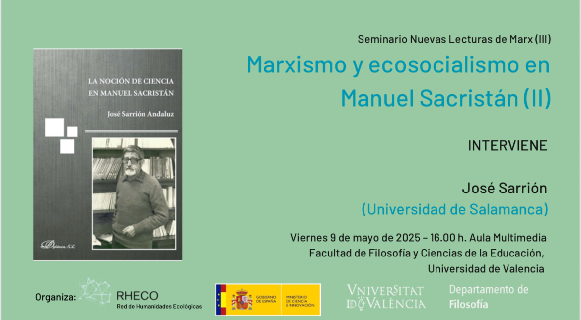 En la Universidad de Valencia, el 9 de mayo de 2025, José Sarrión ofrecerá una conferencia titulada Marxismo y ecosocialismo en Manuel Sacristán (I). La charla será organizada por Luis Arenas.