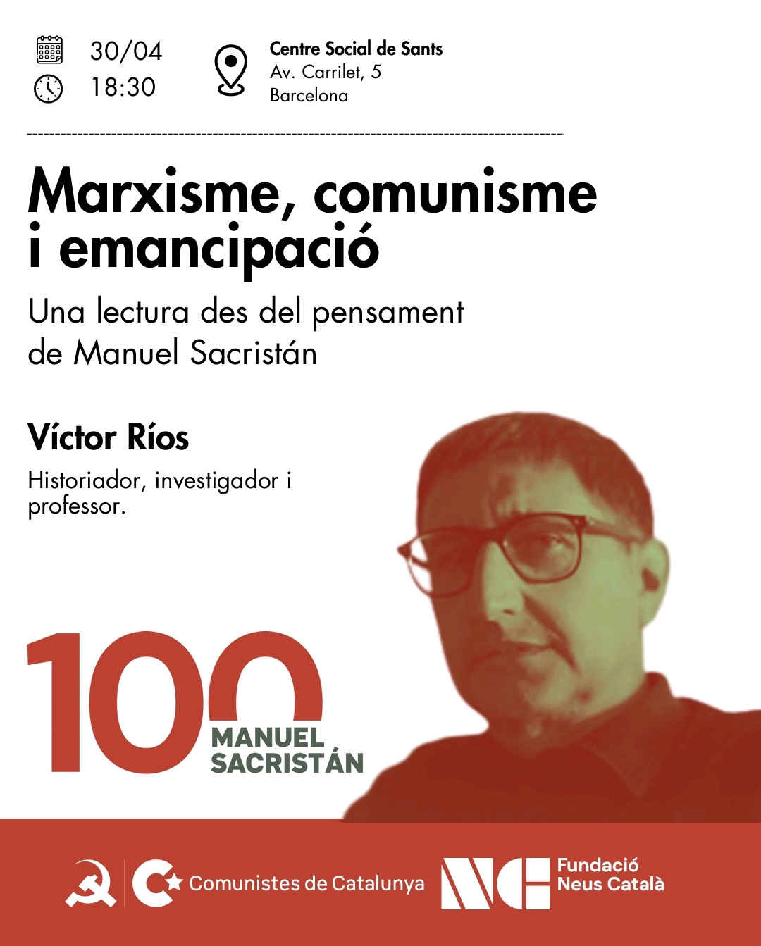 El próximo miércoles 30 tendrá lugar en Barcelona un nuevo acto en torno a Sacristán. Conferencia de Víctor Ríos sobre su pensamiento político.