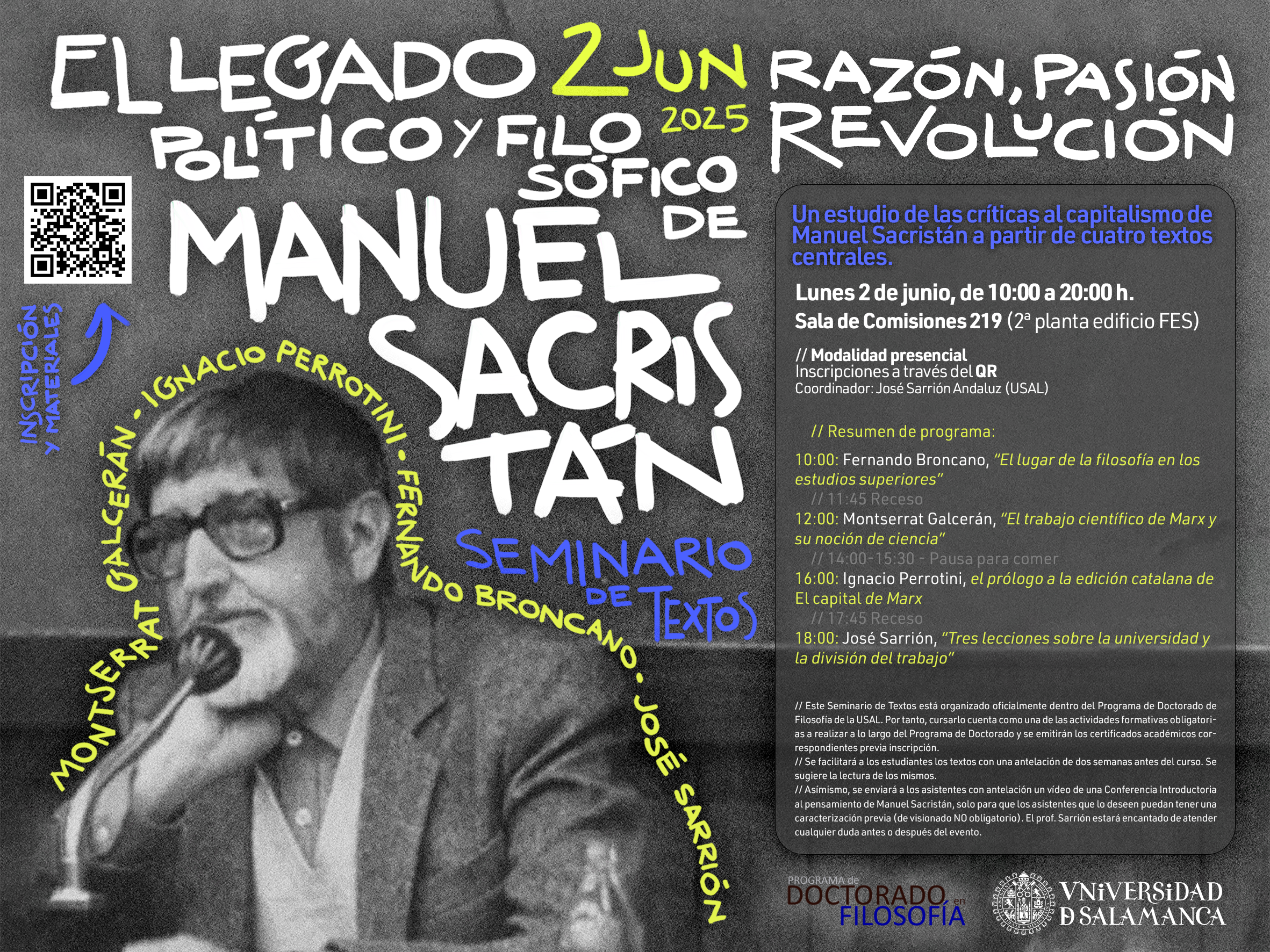 RAZÓN, PASIÓN, REVOLUCIÓN. Seminario de Textos (Universidad de Salamanca): «El legado político y filosófico de Manuel Sacristán»